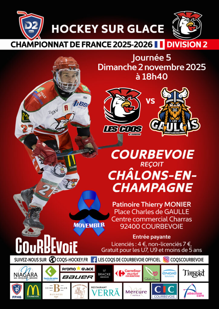 Venez à Courbevoie voir un match de l’équipe des Coqs de Courbevoie (ou COC) en hockey sur glace, et encouragez les !